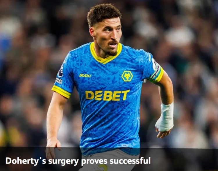 狼队官方:多赫蒂腕舟骨骨折手术成功,预计不会缺阵太长时间